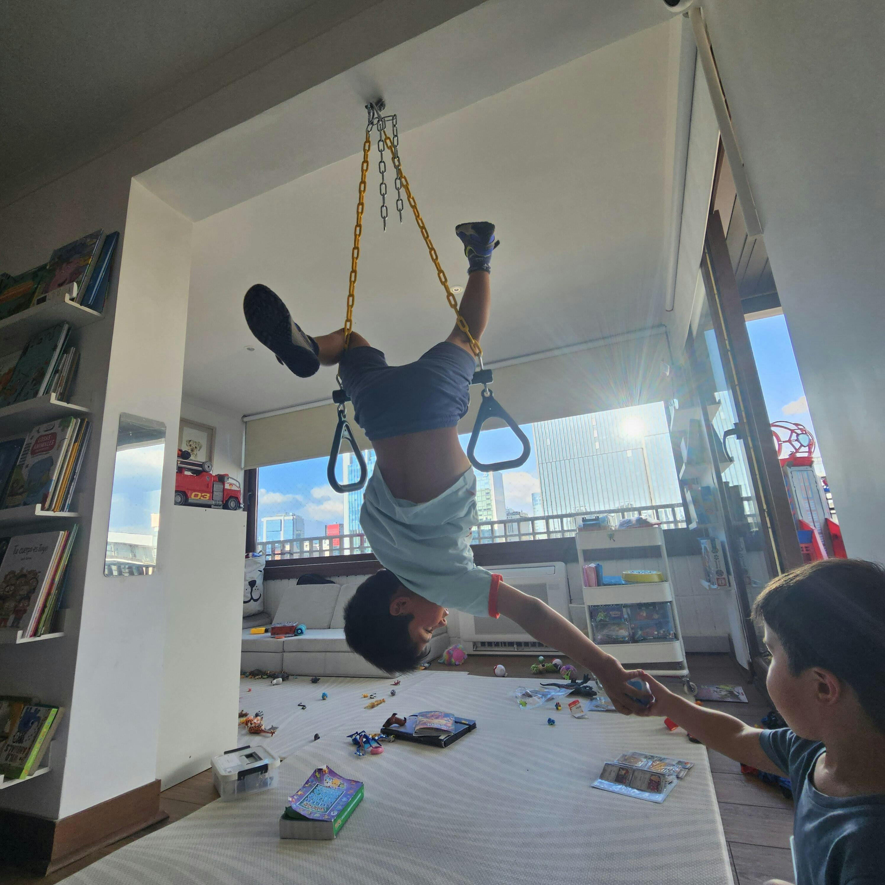 El producto es genial, mi marido aún es un poco reticente, porque nuestros niños son medios locos, pero usado con supervisión es lo máximo, lo pasan increíble, desarrollan ene sus habilidades motoras, aprenden a turnarse también y quedan transpirados como si hubiesen ido a la plaza a jugar. No lo tienen a libre disposición, lo pongo y los superviso, así me aseguro de que no les pase nada.